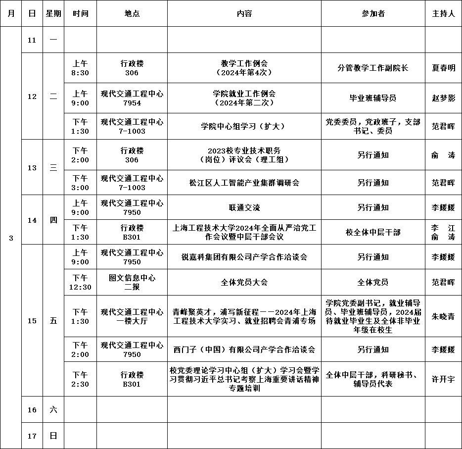 学院第3周活动安排(2024年3月11日-2024年3月17日)
