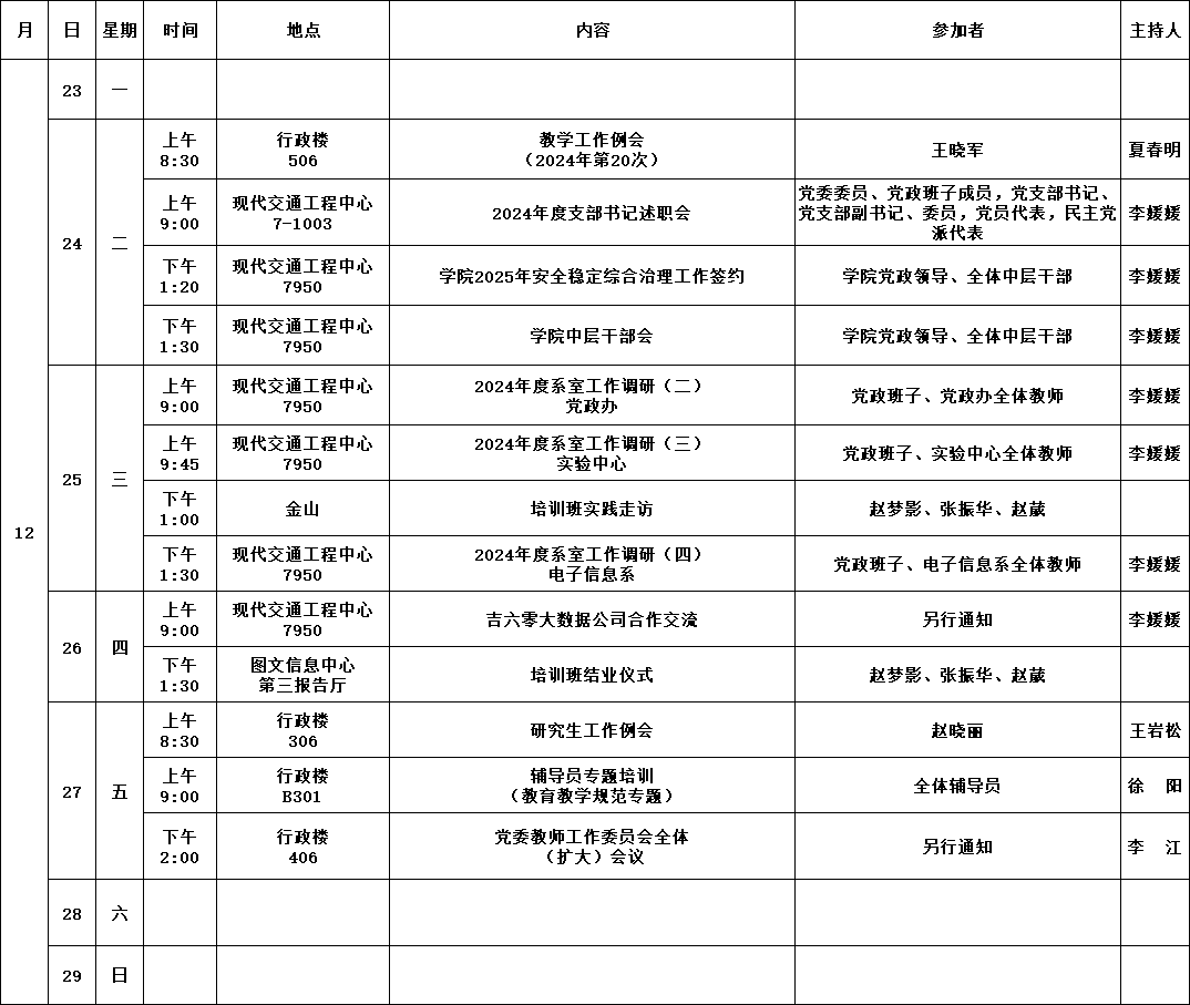 学院第17周活动安排(2024年12月23日-2024年12月29日)