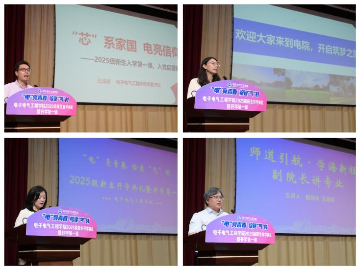 校友张豈明分享了参赛经验与成长感悟,鼓励新生脚踏实地开展实践。新生代表王锶沐表达了电气青年肩负时代使命、共创辉煌的决心。典礼上,学院为辛勤付出的导生和志愿者颁发了聘任证书,传递了电院人的温暖与奉献。学院红“芯”青年讲师团,以“芯火相传:AI时代的青年密码”为主题,宣讲了新时代青年应有的理想与奋斗精神。