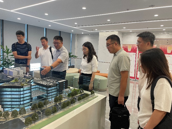 交流活动伊始,在张昀总经理陪同下,学院代表实地参观了北斗博阳空间信息产业园。过程中,张总经理详细介绍了园区的整体布局、生产运营流程、核心技术、研发场景以及新能源相关产品的应用成果,让学院代表直观地了解到企业的发展规模与技术实力。