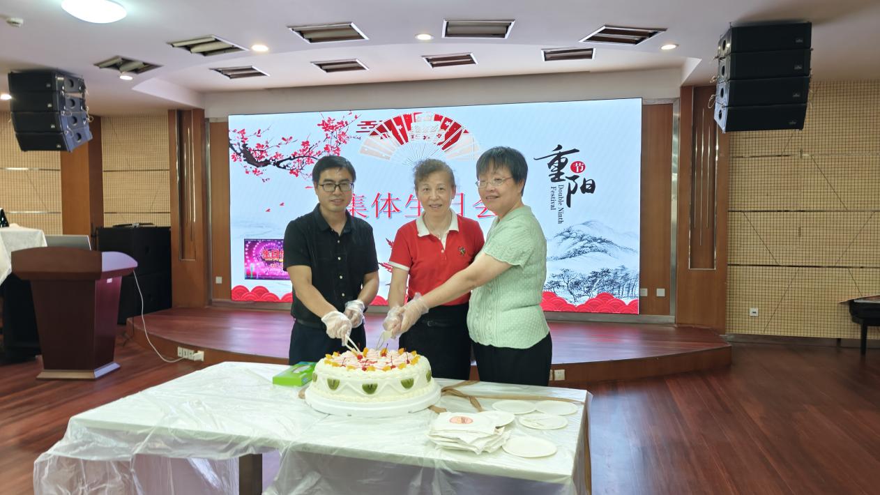 随后,活动进入温馨感人的“集体生日会”环节。学院特别为年满整十岁的老教师们共同庆生。寿星们笑容满面,现场洋溢着温暖与感动。