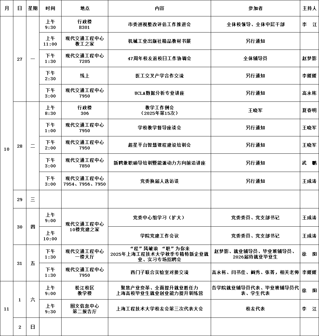 学院第8周活动安排(2025年10月27日-11月2日)