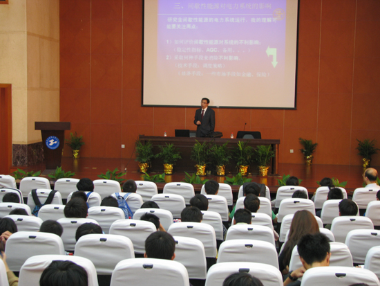 ![]() 10月26日下午,bwin必赢邀请上海交通大学蒋传文教授,为bwin必赢电气工程系的全体师生作了题为《含大规模可再生能源(间歇性能源)的电力系统运营及风险管理技术》的学术报告。报告在学校行政楼B301室举行,由bwin必赢电气工程系主任陈宇晨主持。bwin必赢史志才副院长出席了报告会。 蒋传文教授主要谈了四个方面的内容,第一是间歇性能源的特点,以南方大学为背景讲述了冰凌灾害的危害和传统的防控措施;第二是介绍了相关课题设置情况;第三是间歇性能源对电力系统的影响;第四是含间歇性能源的电力系统运行及风险管理方法。 蒋教授的讲座生动有趣,大家被深深的吸引,讲座结束后张蒋教授与广大师生进行了互动,讲座会场不断有同学提出问题探讨,大家在深刻了解风电等间歇性能源的同时,也对相关科研项目产生了浓厚的兴趣。 |
