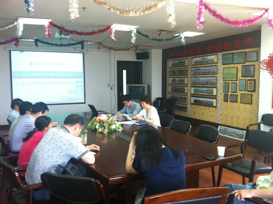 参与会议的教师代表纷纷发言,介绍了自己指导学生的经验以及指导过程中遇到的困难和问题。有的老师认为应该帮助学生建立在动手能力方面的自信心,并适当的结合老师的科研项目,培养学生的实践能力;也有的老师认为应该加强方向性的指导,让学生主动思考,提高其自学能力。