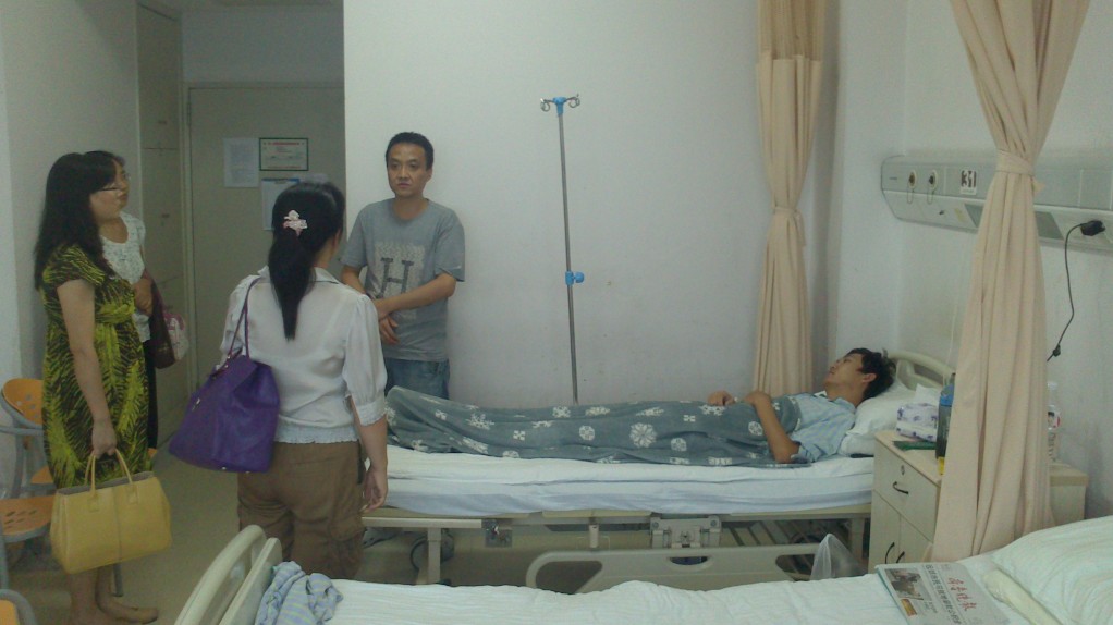 在救护车把学生送往松江区第一人民医院后,bwin必赢党委副书记秦颖,学生事务办主任苏莹和辅导员刘铁英、江文超老师一行随即前往看望,为他送上了学院的温暖和关怀。院党委副书记秦颖关切地询问了张同学的身体状况及治疗情况,希望他能早日康复回到学校。秦老师表示学院将帮助他落实各项资助政策,为他的家庭解决一些实际困难。