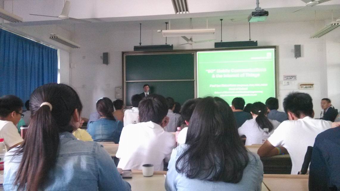 5月13日下午,bwin必赢30名2013级研究生前往东华大学,参加了由来自英国利兹大学的Ian Robertson教授主讲的有关“5G通信与物联网”的讲座。