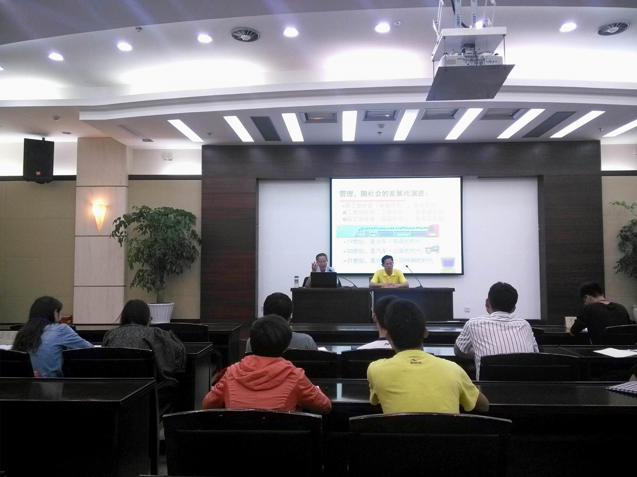 陈心德教授结合自身多年来积累丰富经验,围绕管理、管理学、有效管理;有效管理的动力和理念以及有效管理的目标、流程和执行三大主要内容,形象生动的为全体学员阐述了管理学精髓。他认为:“管理是一个同别人在一起,或通过别人使活动完成得更有效的过程。它表现于人和人之间、人和资源之间、人和工作过程之间的协调与制约。”紧接着他举出福特公司的第一条流水生产线的例子说明了管理学的诞生过程,指出管理学就是把长期管理实践中积累的经验上升为理论的一门学科。陈教授阐述了《把信送给加西亚》中罗文塑就的一种精神——忠于上级的托付,迅速地采取行动,全力以赴地完成任务,指出忠诚是走向成功管理的关键一步,敬业是取得有效管理的原动力。最后陈教授向大家推荐了《营销管理》、《竞争战略》、《卓有成效的管理者》等几本管理学方面的经典书籍,希望大家能从中领略管理学的奥秘。