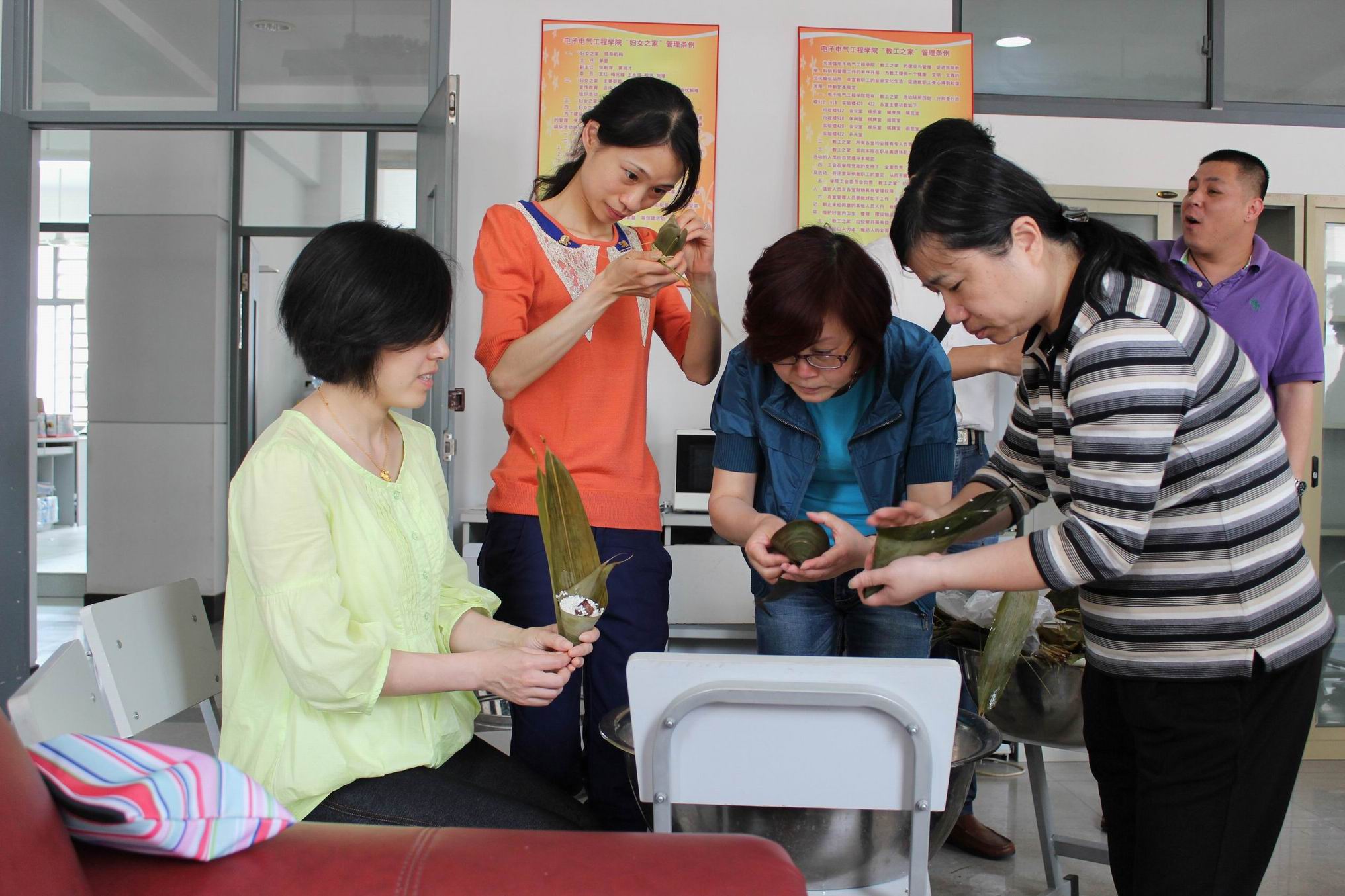 传统的民俗佳节端午节即将来临的前夕,5月26日中午,bwin必赢在实训楼1422室“妇女小家”开展了“粽叶飘香过端午,幸福和谐情谊深”包粽子主题活动。