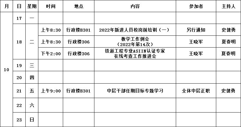 学院第7周活动安排(2022年10月17日-2022年10月23日)