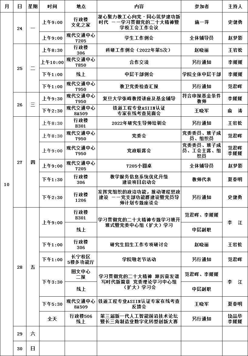 学院第8周活动安排(2022年10月24日-2022年10月30日)