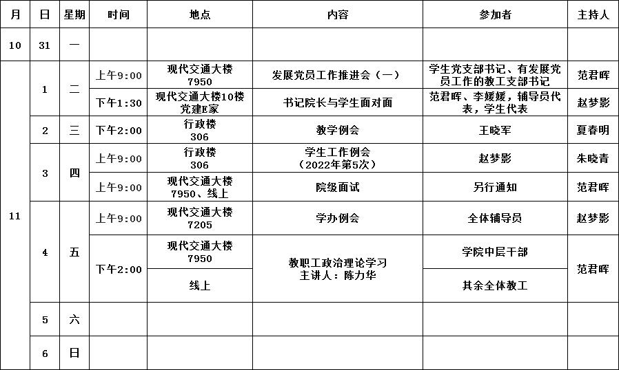 学院第9周活动安排(2022年10月31日-2022年11月6日)