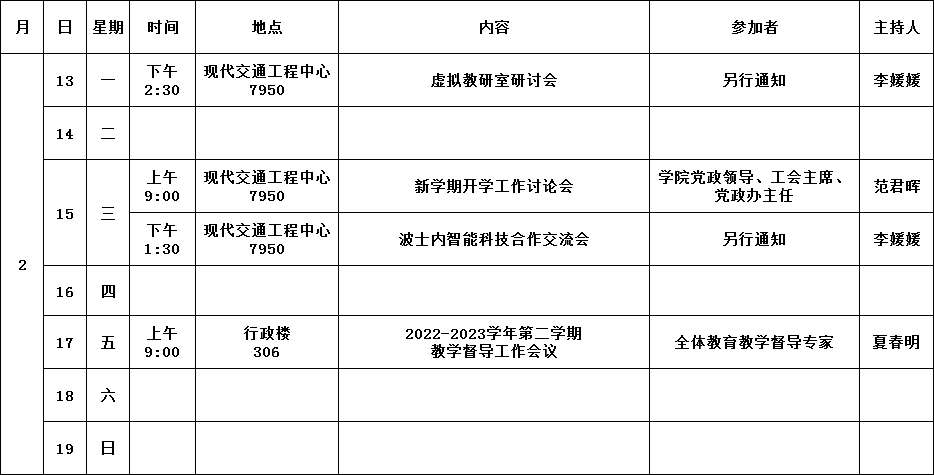 学院第0周活动安排(2023年2月13日-2023年2月19日)