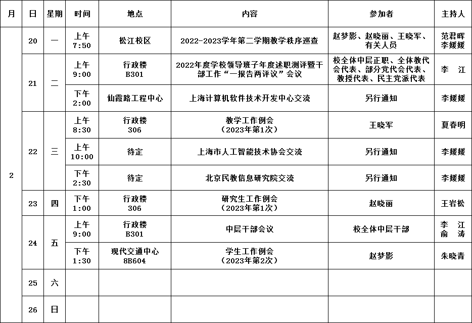 学院第1周活动安排(2023年2月20日-2023年2月26日)