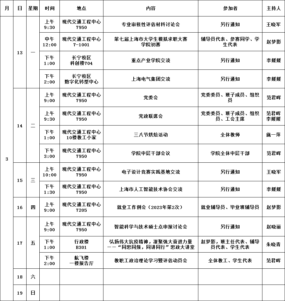 学院第4周活动安排(2023年3月13日-2023年3月19日)