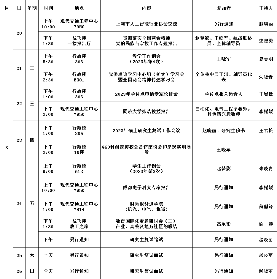 学院第5周活动安排(2023年3月20日-2023年3月26日)