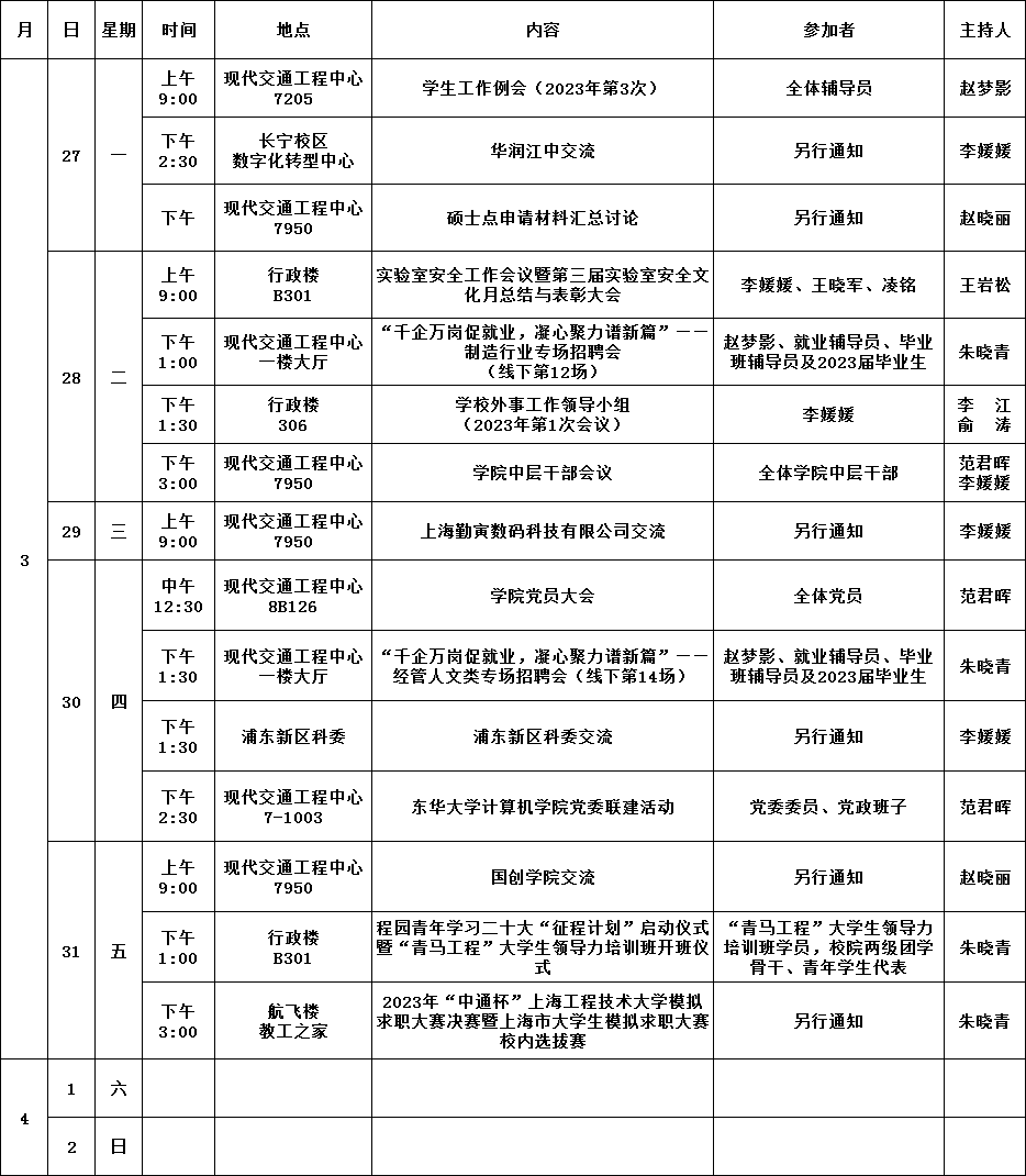 学院第6周活动安排(2023年3月27日-2023年4月2日)