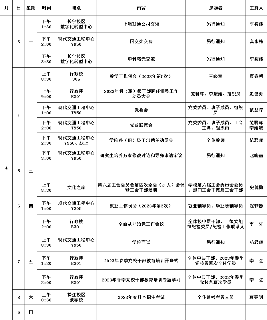 学院第7周活动安排(2023年4月3日-2023年4月9日)