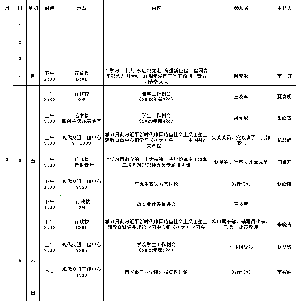 学院第11周活动安排(2023年5月1日-2023年5月7日)
