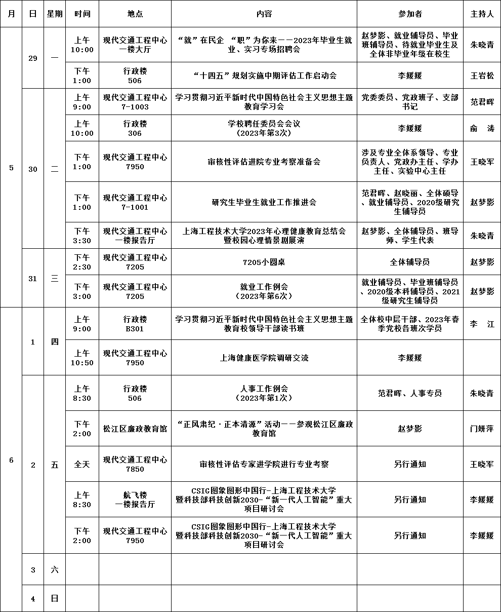 学院第15周活动安排(2023年5月29日-2023年6月4日)