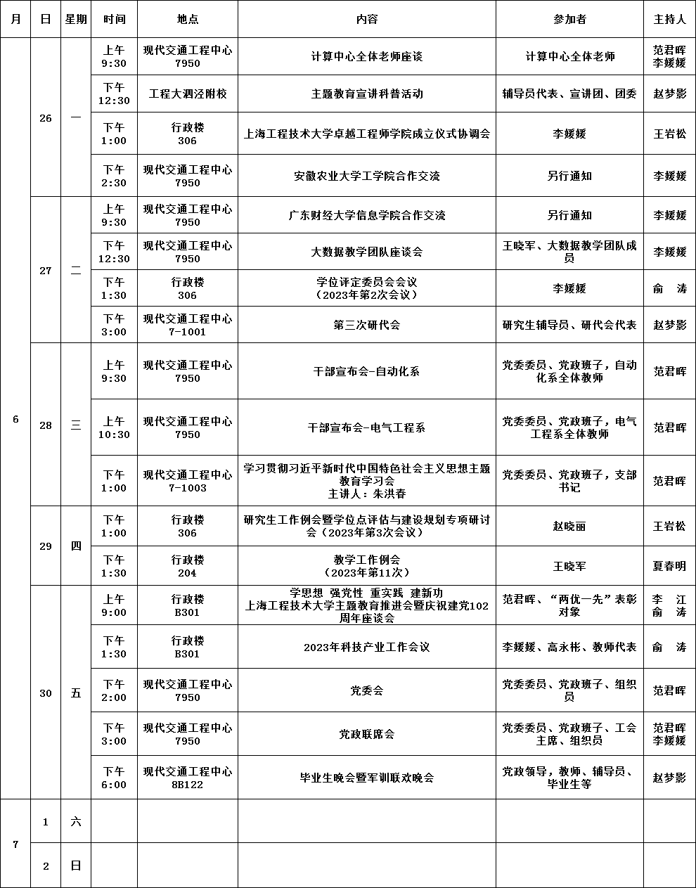 学院第19周活动安排(2023年6月26日-2023年7月2日)