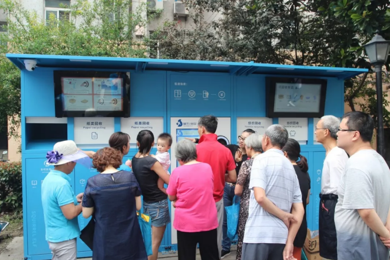 与小松鼠公司共同研发的小松鼠智能回收系统已在上海多个高校和小区投入使用。小松鼠智能回收箱内置容量感应器,当箱体满载后便会自向周边的运维人员发出预警提示。小松鼠专业的清运人员会在15分钟内前往现场,将各品类回收桶进行清空,并集运至就近中转站。每一个箱体的清运都有相应的标识来追溯源头、品类及对应重量。